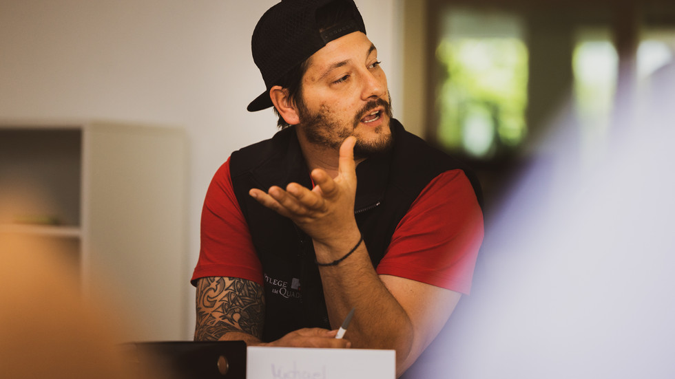 Der Vortrag beginnt und als Erstes steht die Begrüßungsrunde an. Dies stellte sich für unsere Dokumentation als ein Glücksmoment heraus, denn wie und warum Menschen in den Betreuungsberuf einsteigen, ist gänzlich unterschiedlich.